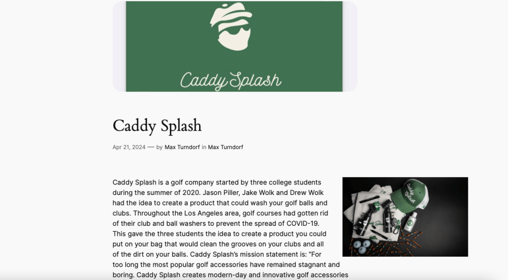 While in my J452 course at the University of Oregon I had the opportunity to write two blog post about one of my best friends golf companies, Caddy Splash. My first post was an overview of the company and who they are. While my second post was an in-depth interview with Drew Wolk to learn more about what Caddy Splash really is and what it means to him.